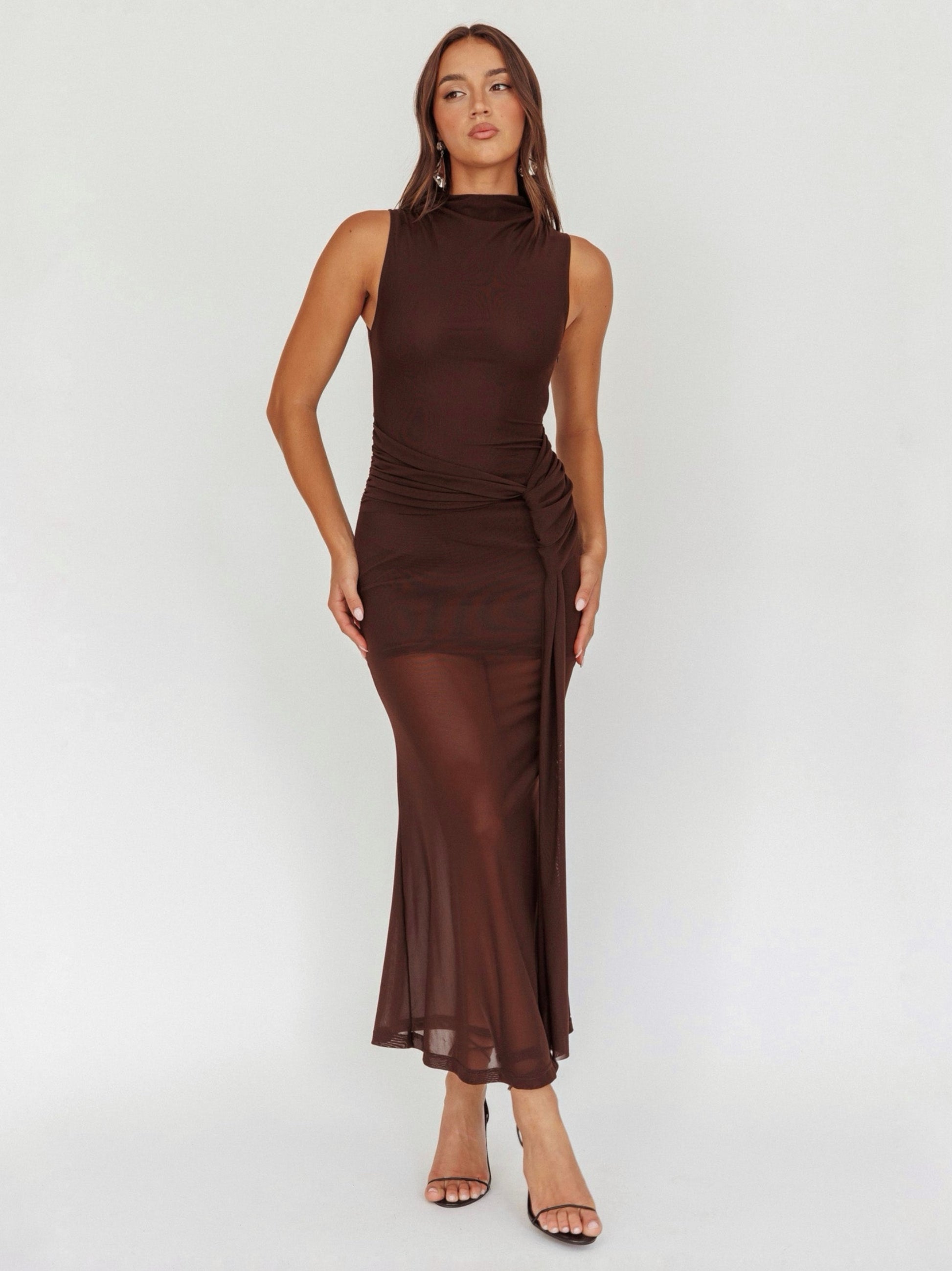 BELLAMY MESH MIDI DRESS - CHOCOLATE