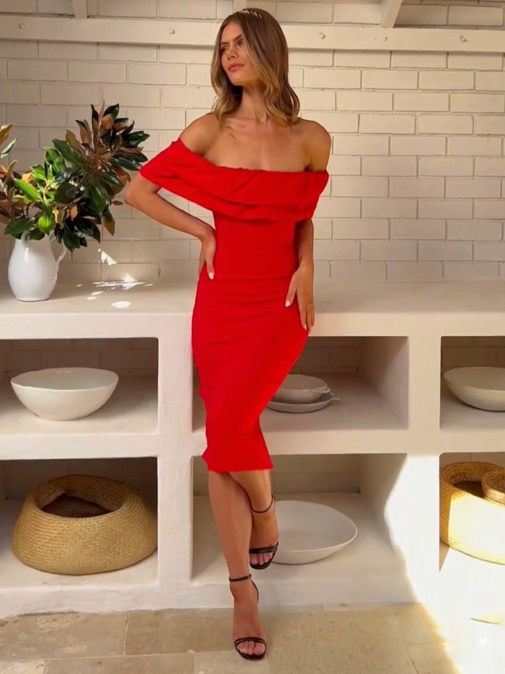 •Red midi dress