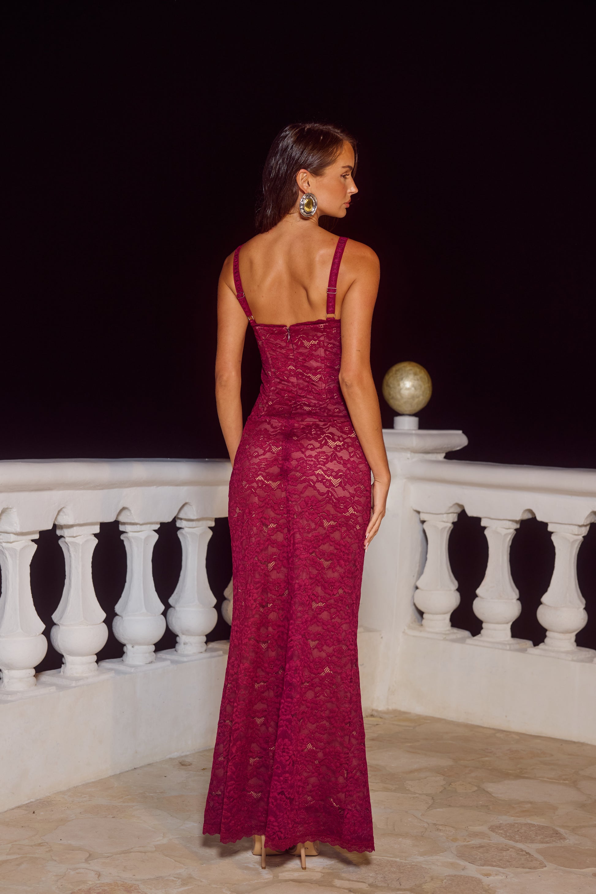 HAILEE LACE CORSET MAXI DRESS - WINE